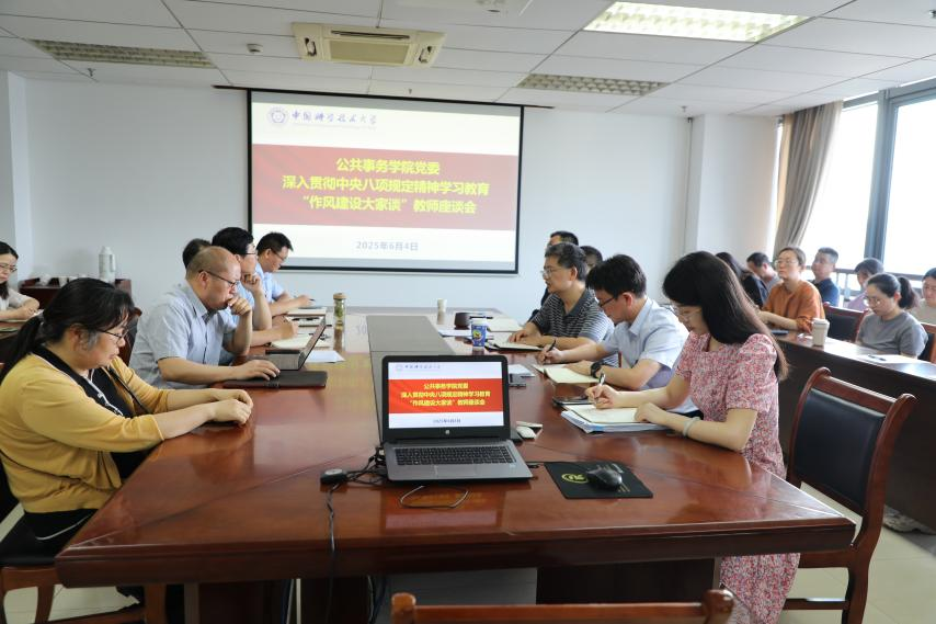 为深入贯彻中央八项规定精神学习教育,推进党的作风建设走深走实,落实校党委关于“开门教育”的实施方案,公共事务学院注重师生参与,加强调查研究,于5月21日至6月4日期间组织召开深入贯彻中央八项规定精神学习教育“作风建设大家谈”系列师生座谈会,以弄清楚师生群众的急难愁盼、弄清楚学院亟待解决的突出问题为目标,广泛听取师生意见,凝聚发展共识,切实将作风建设成果转化为推动学院高质量发展的实践动力。