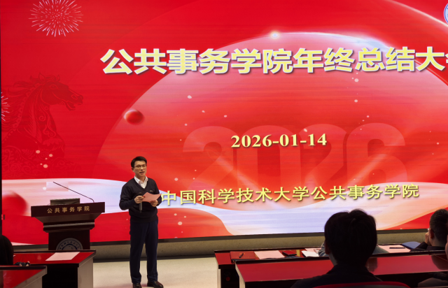 1月14日下午,公共事务学院在管理科研楼二楼报告厅召开2025年度年终总结大会。学院党政领导班子成员和全体教职工参加了会议。会议由学院党委书记杜少甫主持。