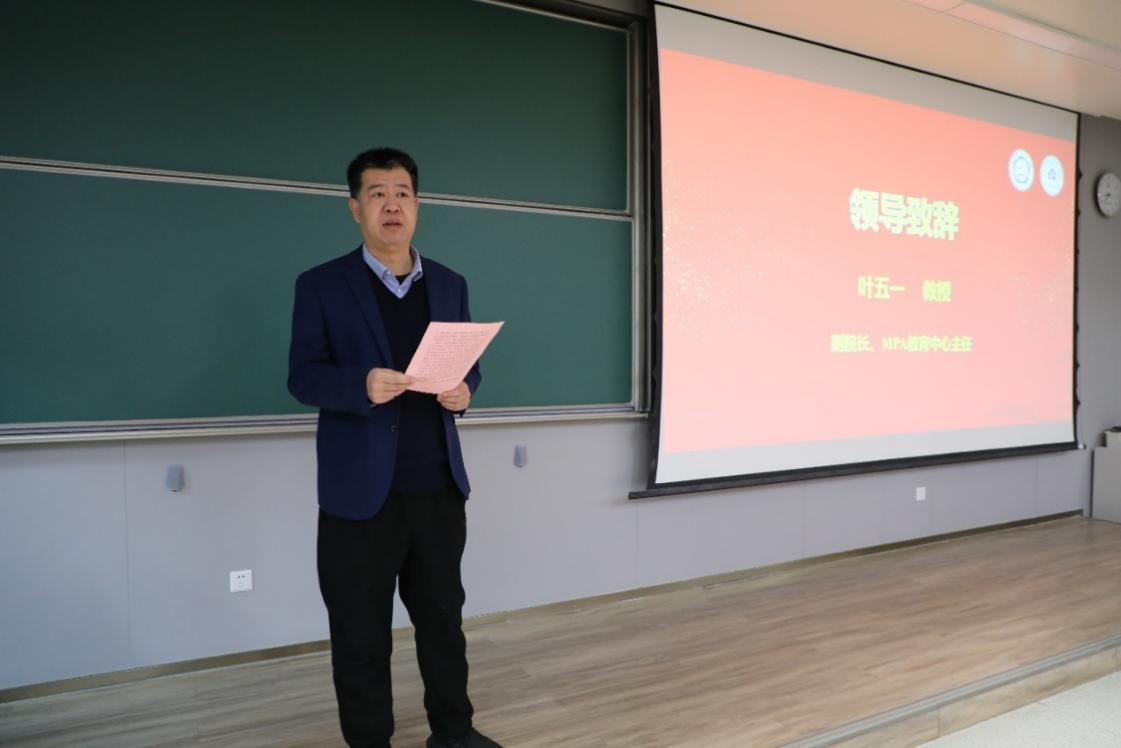 学院副院长、MPA教育中心主任叶五一教授参加开幕式并致辞。他首先对莅临现场的各位专家评委及全体参赛师生表示诚挚欢迎,向历经多轮遴选成功晋级决赛的队伍表示热烈祝贺。叶五一指出,案例大赛正是检验学生专业能力的重要平台,既能夯实理论基础,又能锤炼大家深入一线调研、精准破解问题的实操本领,是学院优化公共管理人才培养模式、强化实践教学的关键举措。希望全体参赛队伍能赛出水平、赛出风采,在思想碰撞中提炼治理智慧,在实战比拼中锤炼过硬本领。