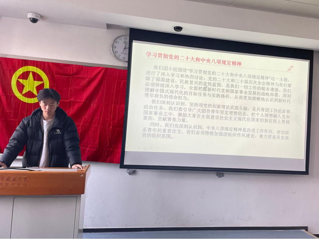 会议伊始,各团小组组长依次汇报组内学习情况。韩杰同学表示,团组织必须持续加强作风建设,营造务实高效的组织氛围。王艺璇同学则谈到,新时代团员要把个人理想融入党和国家事业之中,在服务国家发展和社会进步的生动实践中实现自己的青春价值。