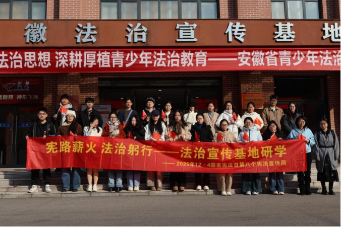 125日,“宪路薪火,法治躬行”沉浸式研学活动吸引了来自多个学院的三十余名学生代表积极参与。同学们前往安徽省法治宣传基地先后参观了“学思践悟习近平法治思想,深根厚植青少年法治教育”主题成果展及其他专题展区,通过图文展板、历史影像与多媒体交互等形式,系统学习了宪法的发展脉络与核心内容。在“走进宪法”互动体验区,同学们借助沉浸式展陈与真实案例,通过模拟参与、场景体验等方式,直观感受宪法在社会治理和日常生活中的重要作用。此次实地研学活动,进一步加深了同学们对宪法精神的理解,有效提升了法治素养。