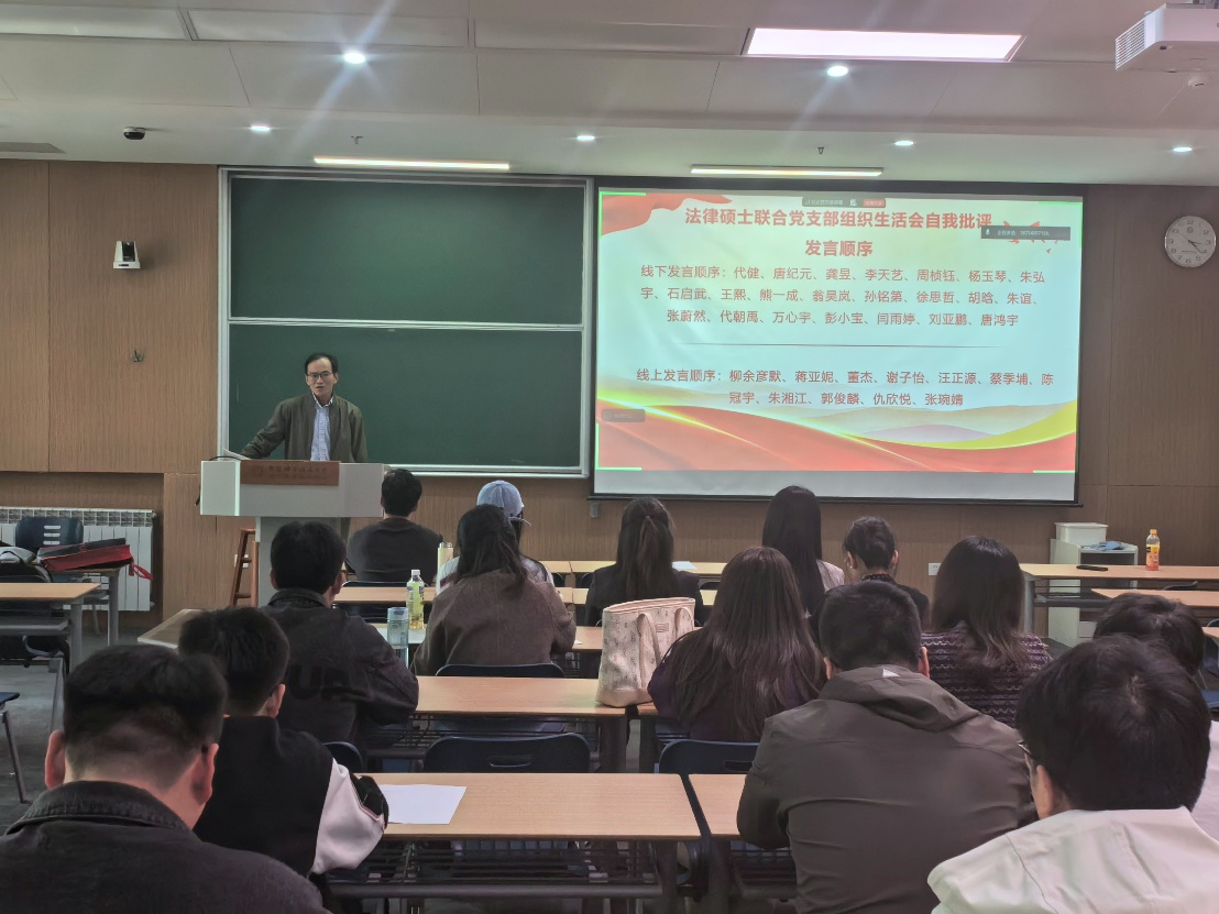 为进一步强化支部建设,深入学习贯彻习近平总书记关于树立和践行正确政绩观的重要论述,3月29日下午,法律硕士联合党支部召开2025年度组织生活会暨民主评议党员大会、“树立和践行正确政绩观”主题党日活动。会议由党支部常务副书记代健主持,学院党委委员、支部书记彭小宝出席会议并指导,支部全体成员共同参加。